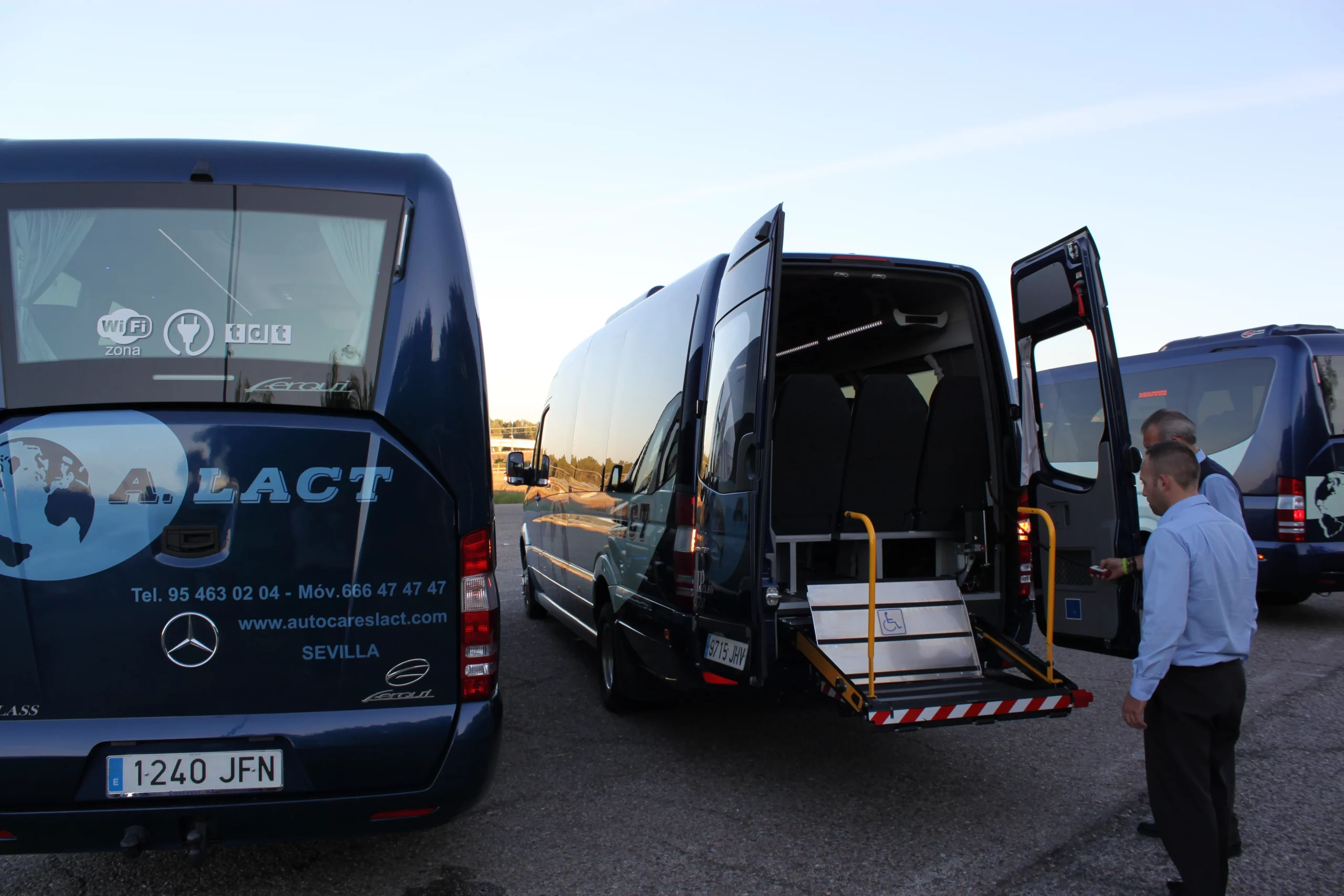 Contamos con hasta 3 vehículos de diferentes capacidades, adaptados para todas aquellas personas que tiene una movilidad reducida. Estos vehículos disponen de una plataforma elevadora para que dichas personas puedan acceder hasta el interior del vehículo. En autocares LACT destacamos la importancia de contar con un autobús adaptado para minusválidos.